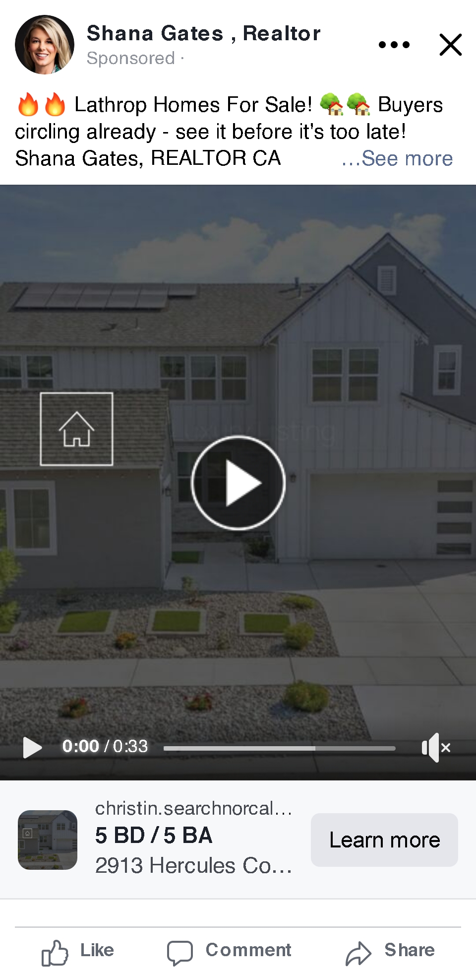 Below are just a few examples of the targeted advertising on Facebook that your home will benefit from when you hire me as your agent.